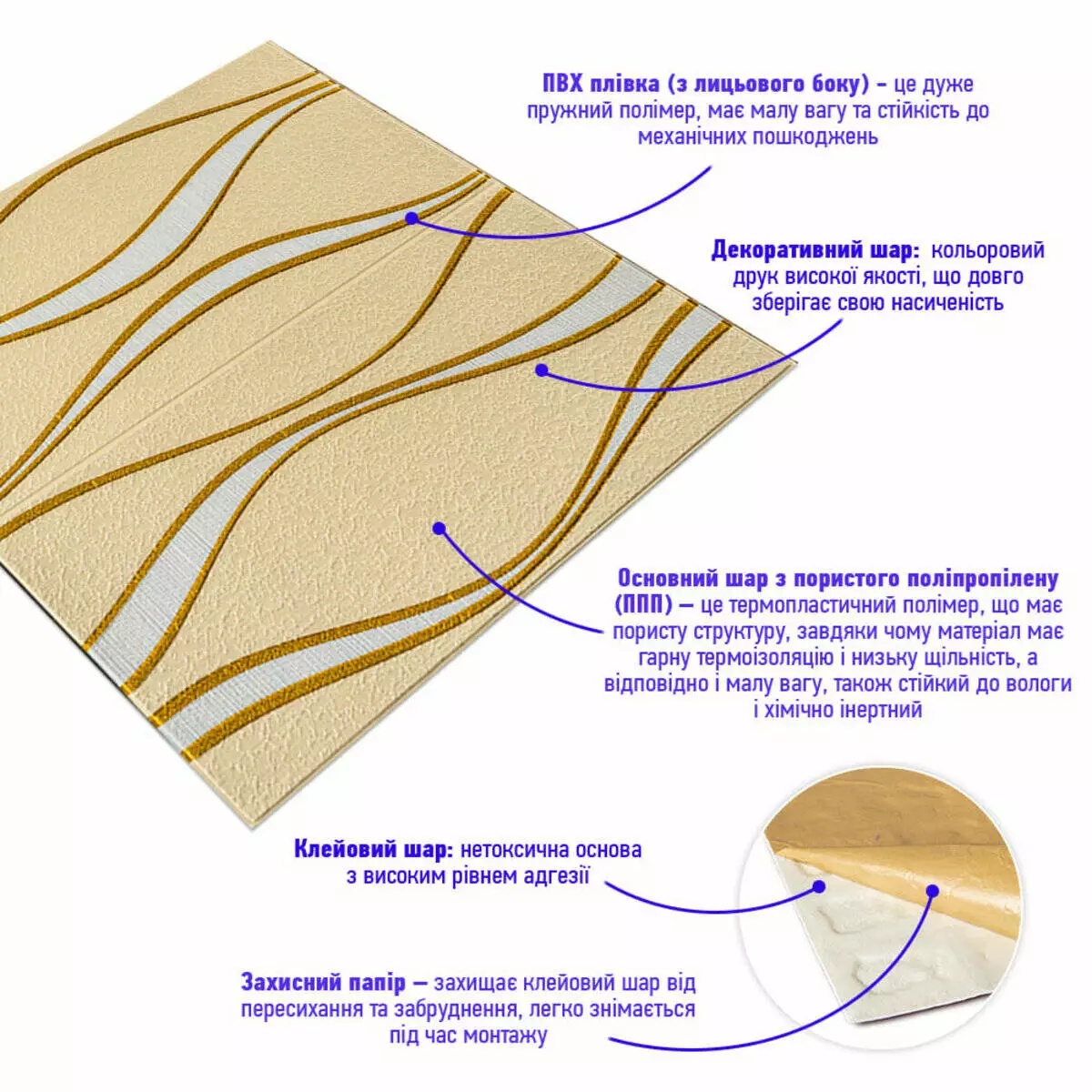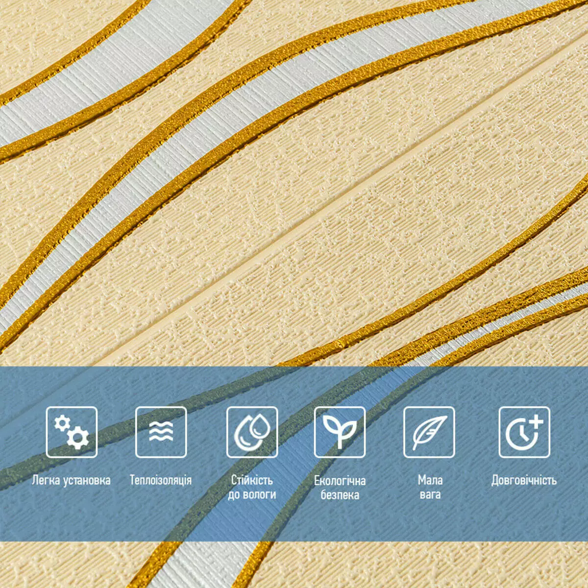 Самоклеюча 3D панельі 700x700x5мм золоті хвилі (194) SW-00000766