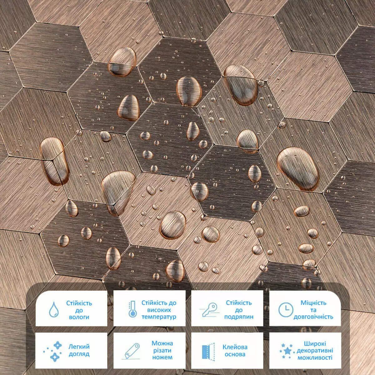 - Легка установка: самоклеюча плитка спрощує процес без додаткового клею.