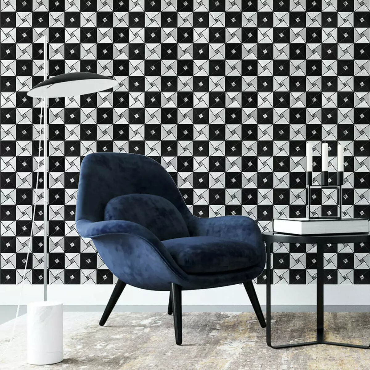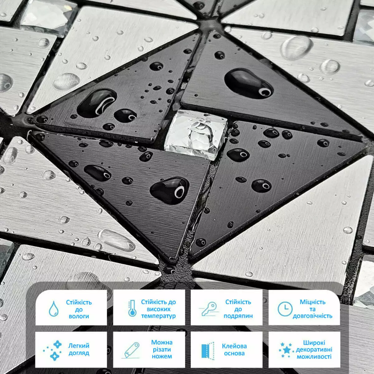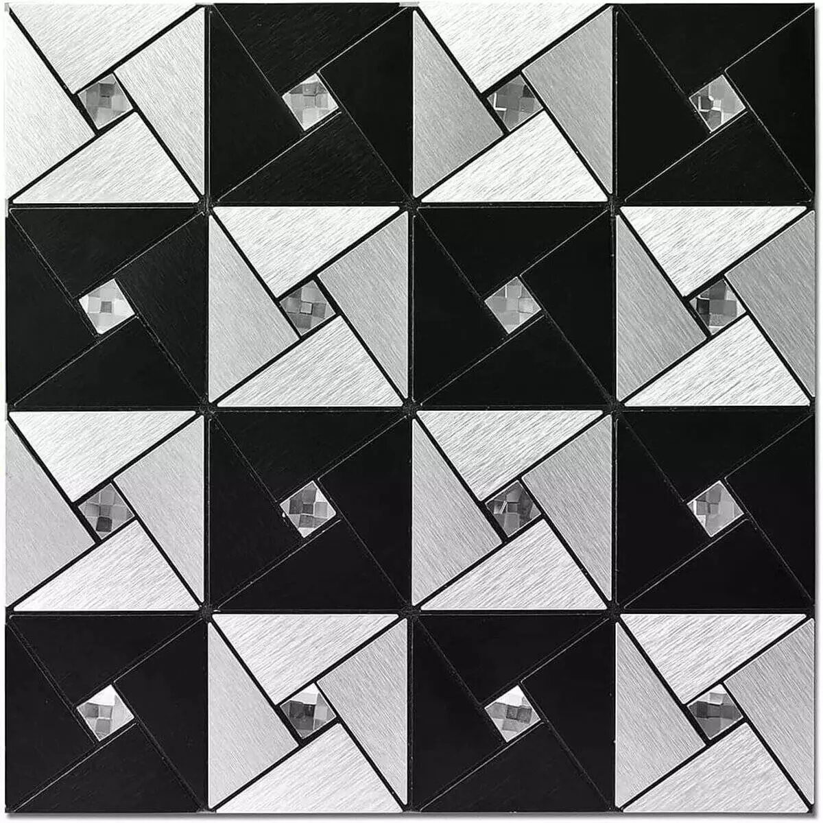 Самоклеюча алюмінієва плитка 300х300х3мм Чорно-срібна зі стразами SW-00001773