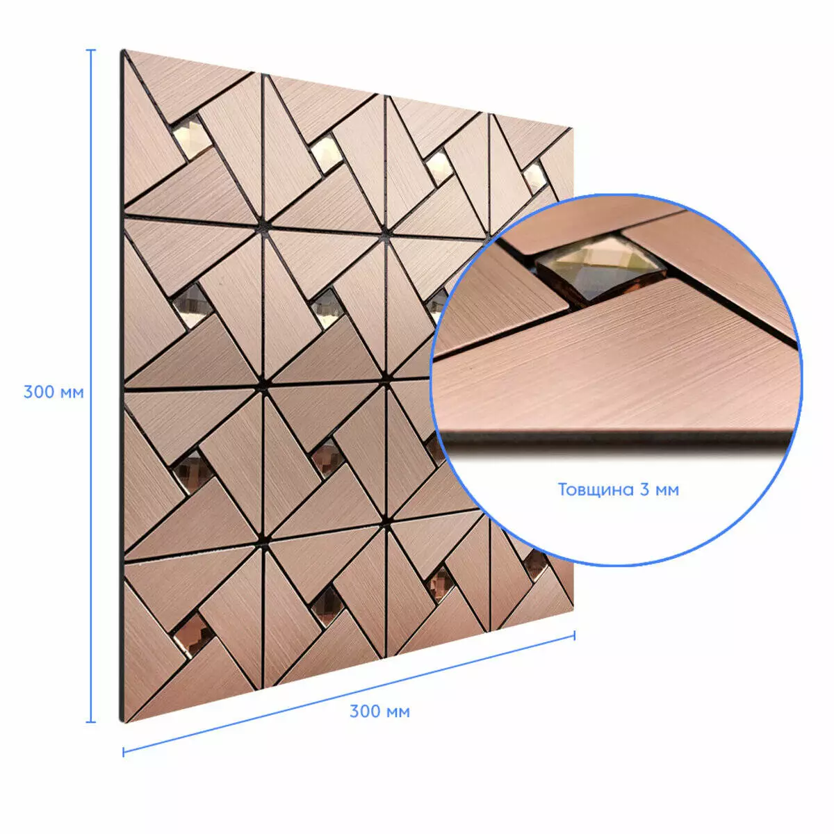 Самоклеюча алюмінієва плитка 300х300х3мм Мідна зі стразами SW-00001416 (D)