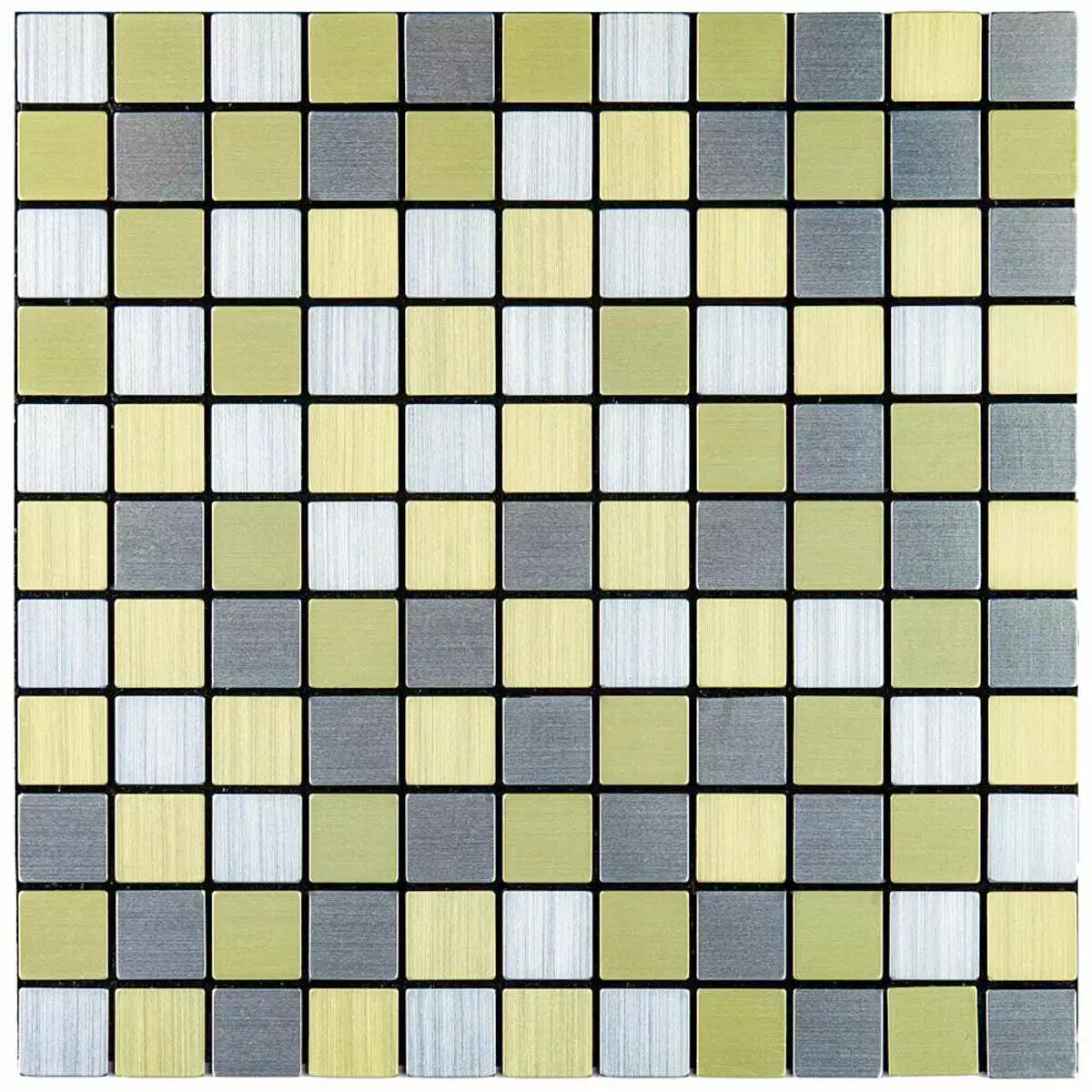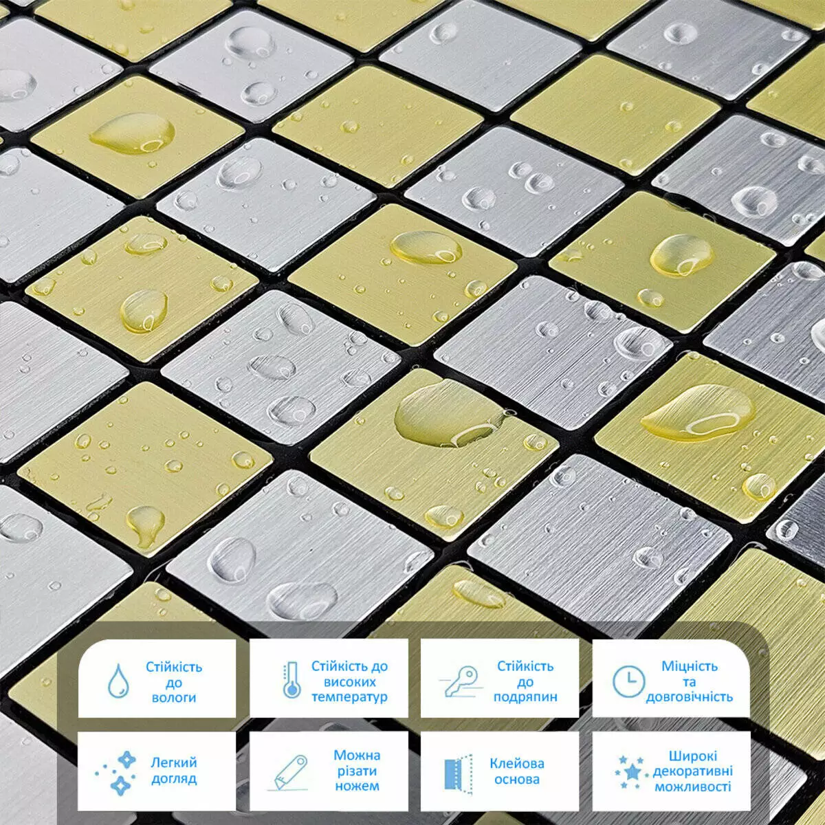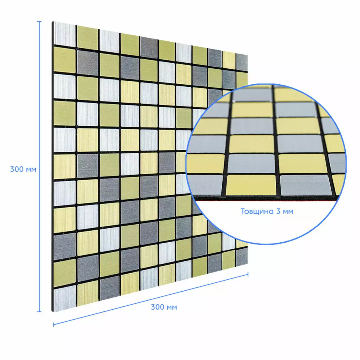 Самоклеюча алюмінієва плитка 300х300х3мм Срібна із золотом шахівниця SW-00001827