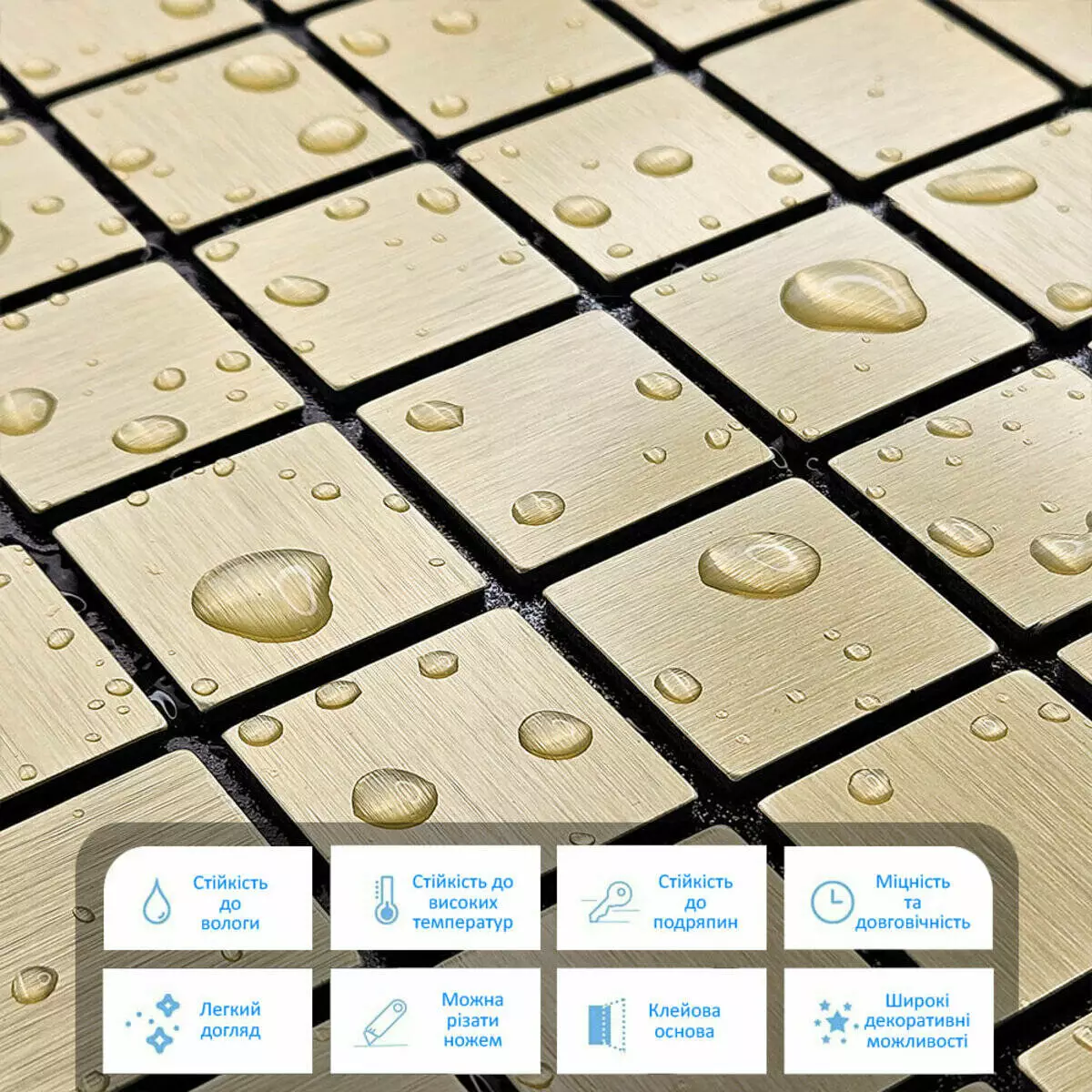 Самоклеюча алюмінієва плитка 300х300х3мм Зелене золото мозаїка SW-00001168