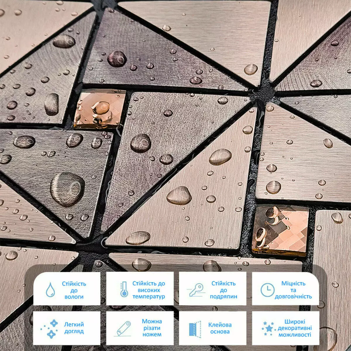 - Захисний силіконізований папір: захищає клейовий шар від пересихання та забруднення, легко знімається під час монтажу.