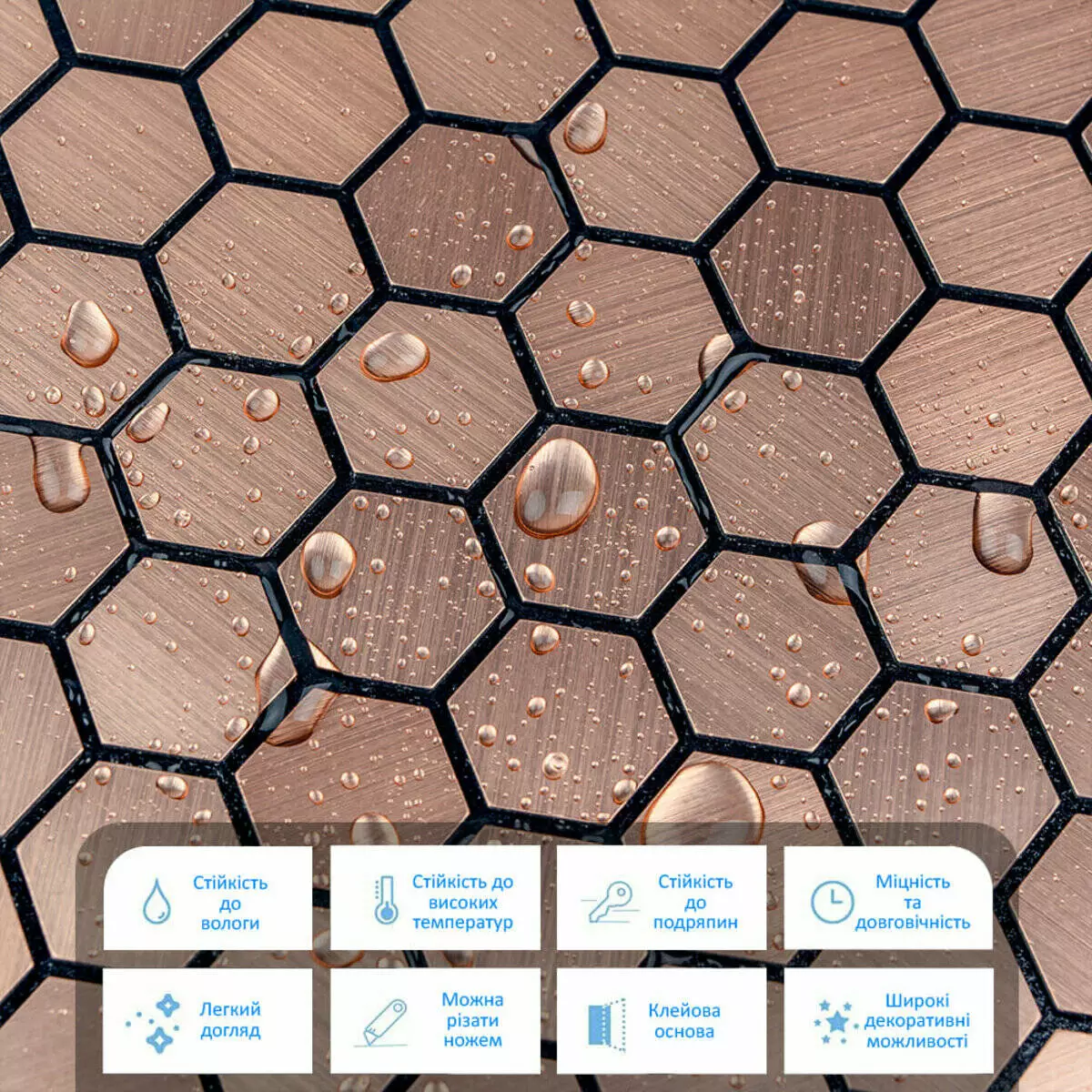 - Захисний силіконізований папір: захищає клейовий шар від пересихання та забруднення, легко знімається під час монтажу.