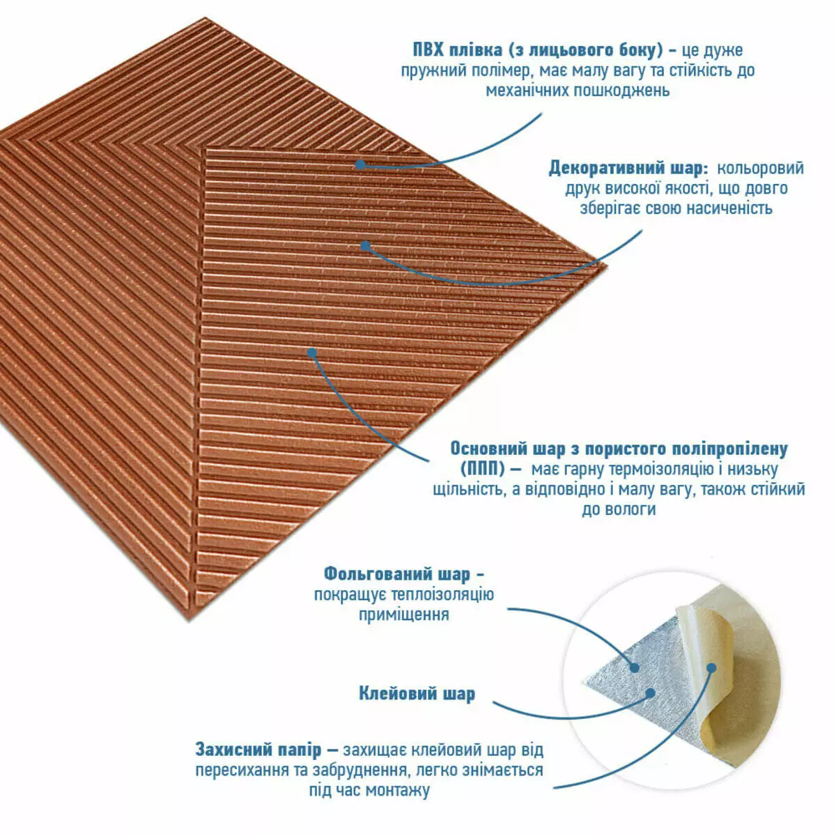 Самоклеюча декоративна 3D панель 500х500х5мм Коричневий SW-00002880