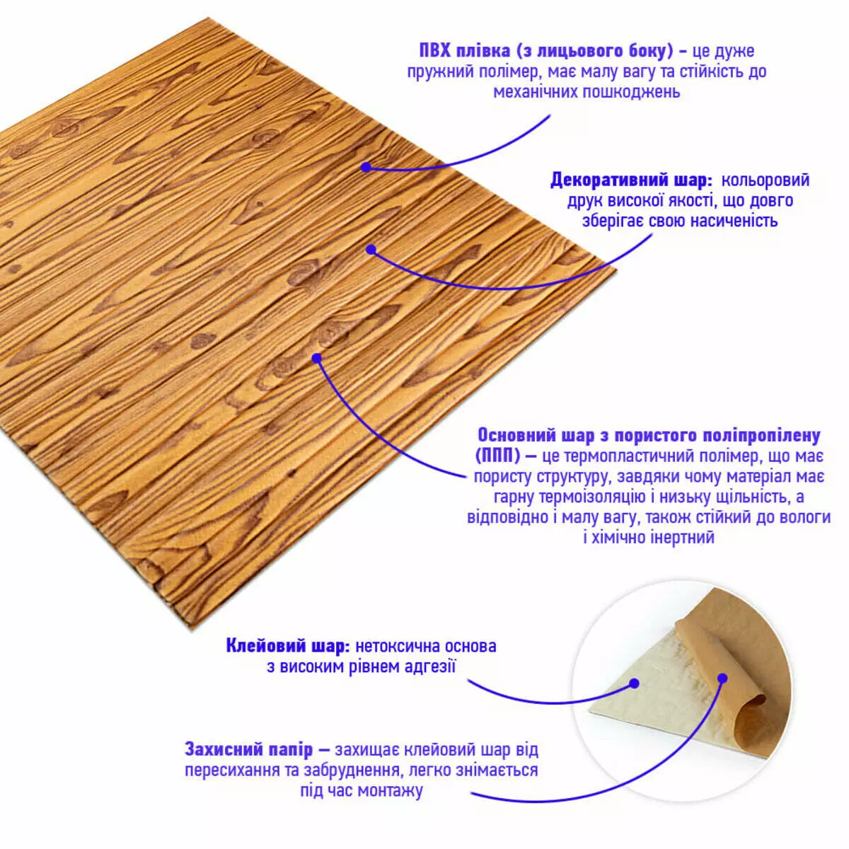 Самоклеюча декоративна 3D панель бамбук дерево 700x700x8.5мм (072)
