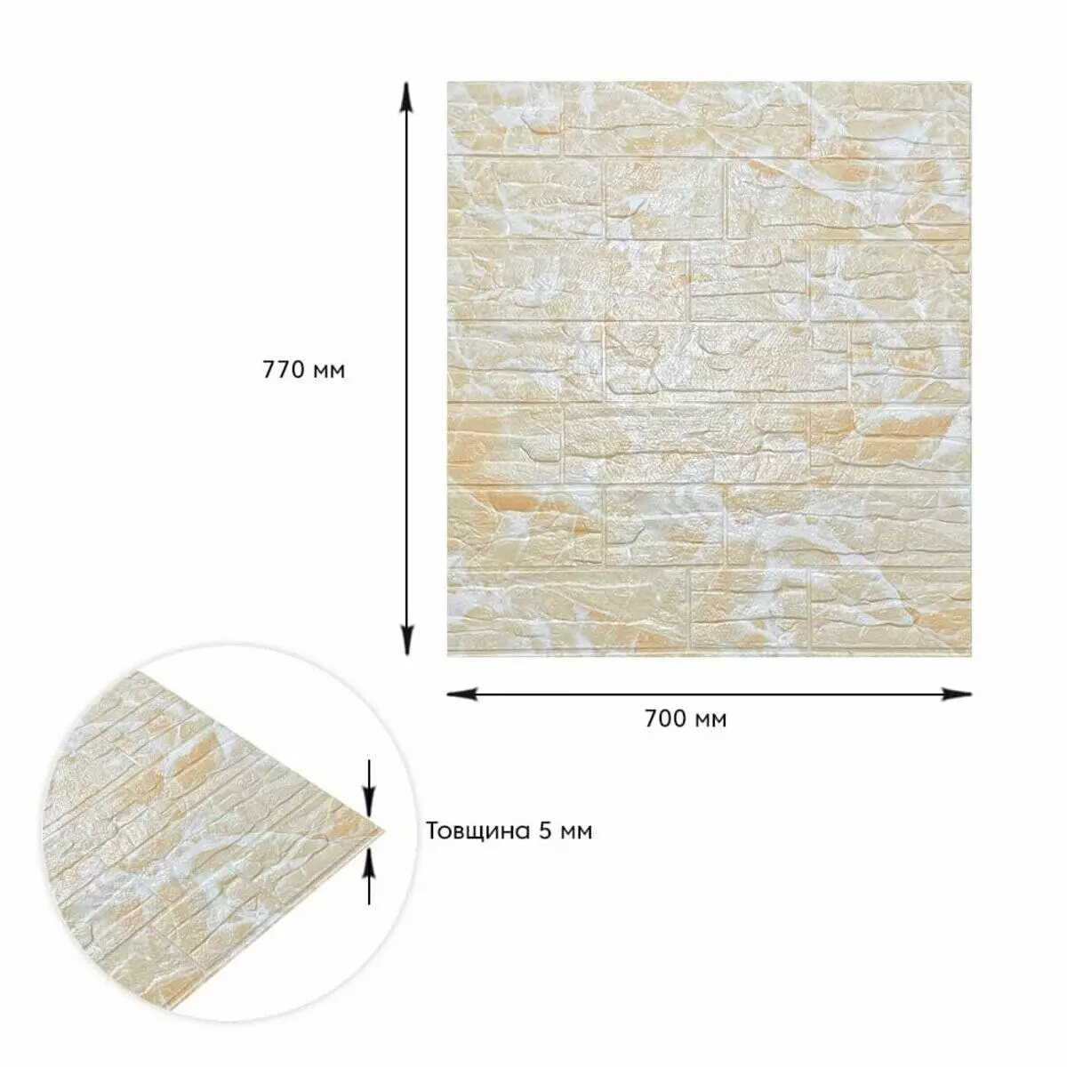 Самоклеюча декоративна 3D панель камінь Бежева рвана цегла700х770х3мм (157)