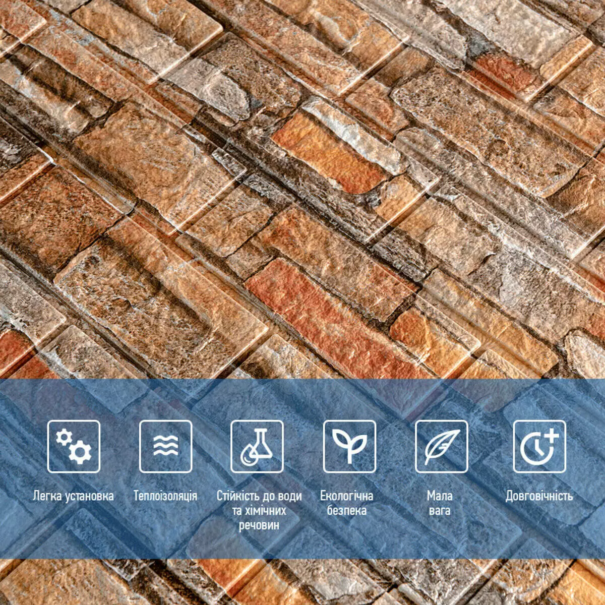 - Легкість монтажу: наявність клейового шару дозволяє встановити панелі без необхідності застосування додаткових матеріалів.