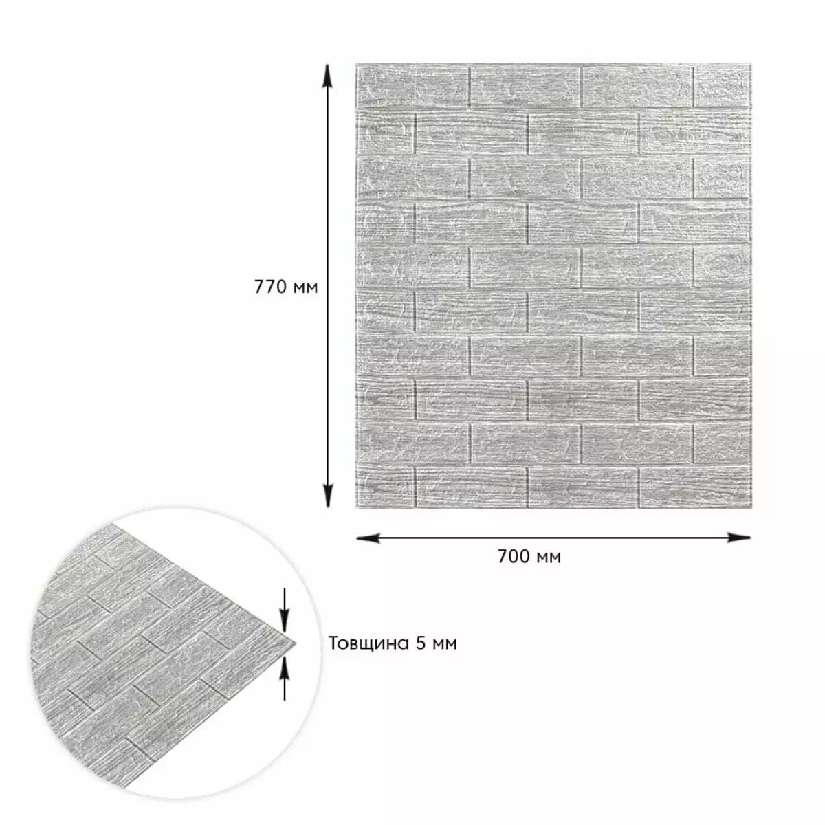 Самоклеюча декоративна 3D панель 700х770х5мм Сіра смужка цегла (183) SW-00000488