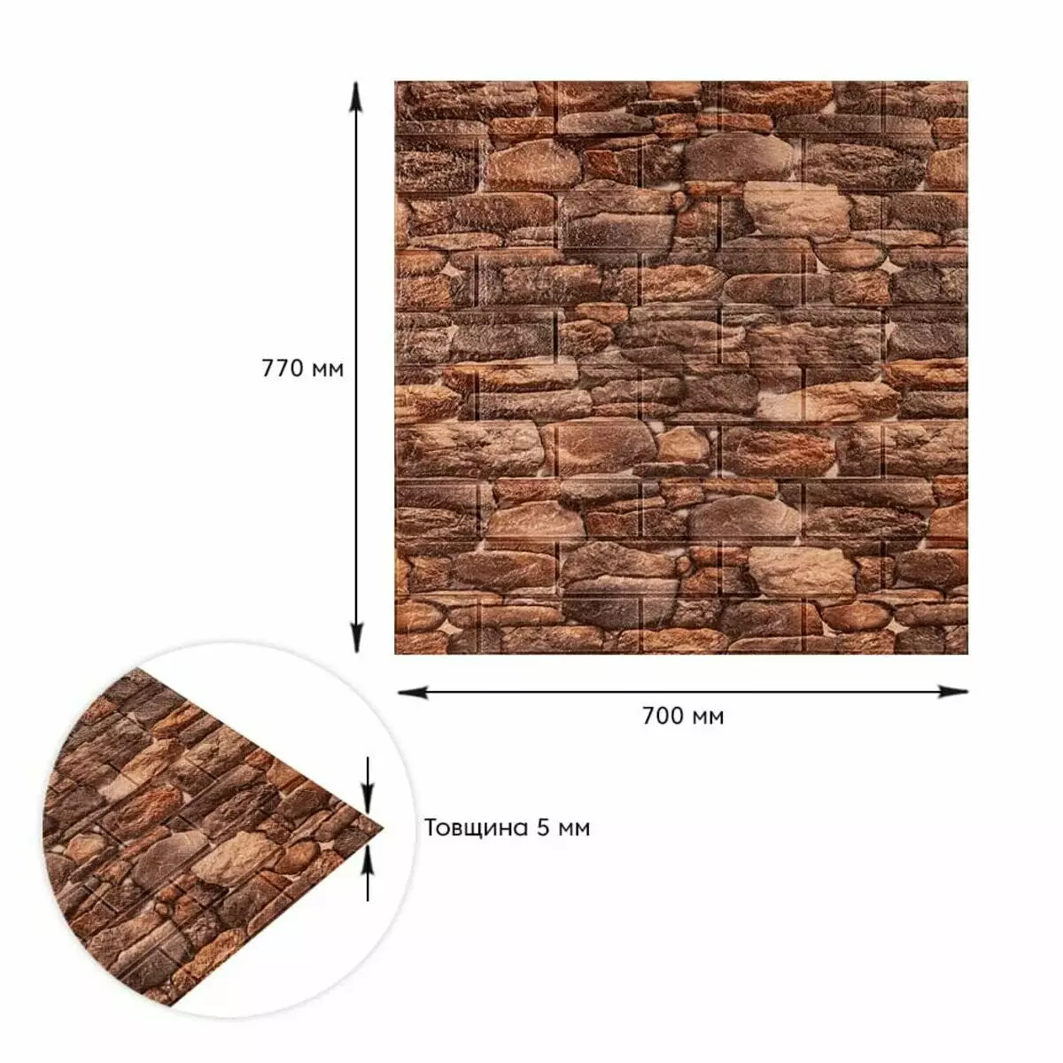 Самоклеюча декоративна 3D панелі 700х770х5мм Матовий камінь (060M) SW-00000635