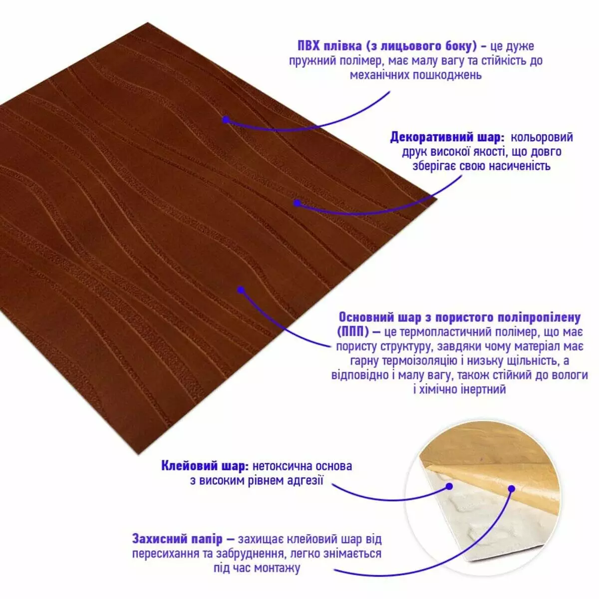 Самоклеюча декоративна настінно-стельова 3D панель коричневі хвилі 600x600x5мм