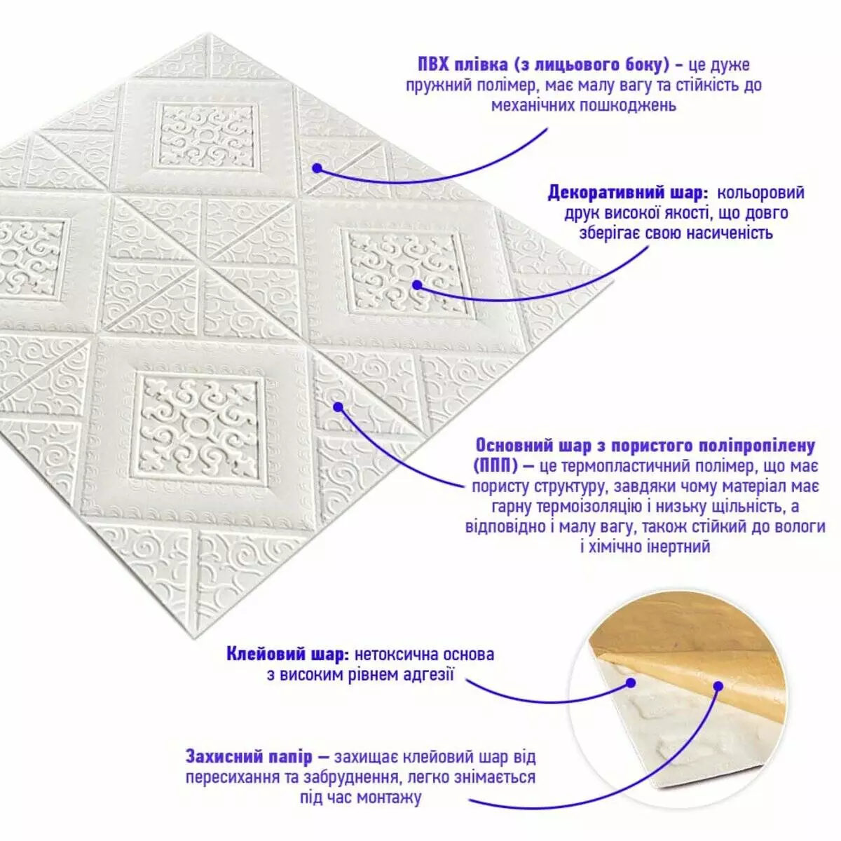 Самоклеюча декоративна настінно-стельова 3D панель вензеля в ромбі 700х700х5мм (374) SW-00000881