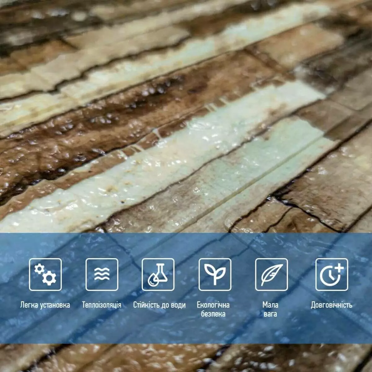 - Легкість монтажу: наявність клейового шару дозволяє встановити панелі без необхідності застосування додаткових матеріалів.