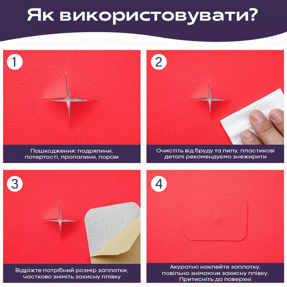 Самоклейна екошкіра у рулоні легко та швидко допоможе усунути усі проблеми з виробами із натуральної шкіри або її аналогів. Більше не треба турбуватися про гострі пазурі домашніх улюбленців чи сліди від попелу цигарок, швидко та самостійно можна відреставрувати меблі чи салон автівки. Матеріал може використовуватися як у вигляді фігурних латок, так і довгими смугами для усунення досить великої площі дефектів. Матеріал міцний, зносостійкий, вологостійкий, стійкий до забруднень, що робить його незамінним та бюджетним помічником при реставрації предметів щоденного вжитку та збільшує термін їх використання.