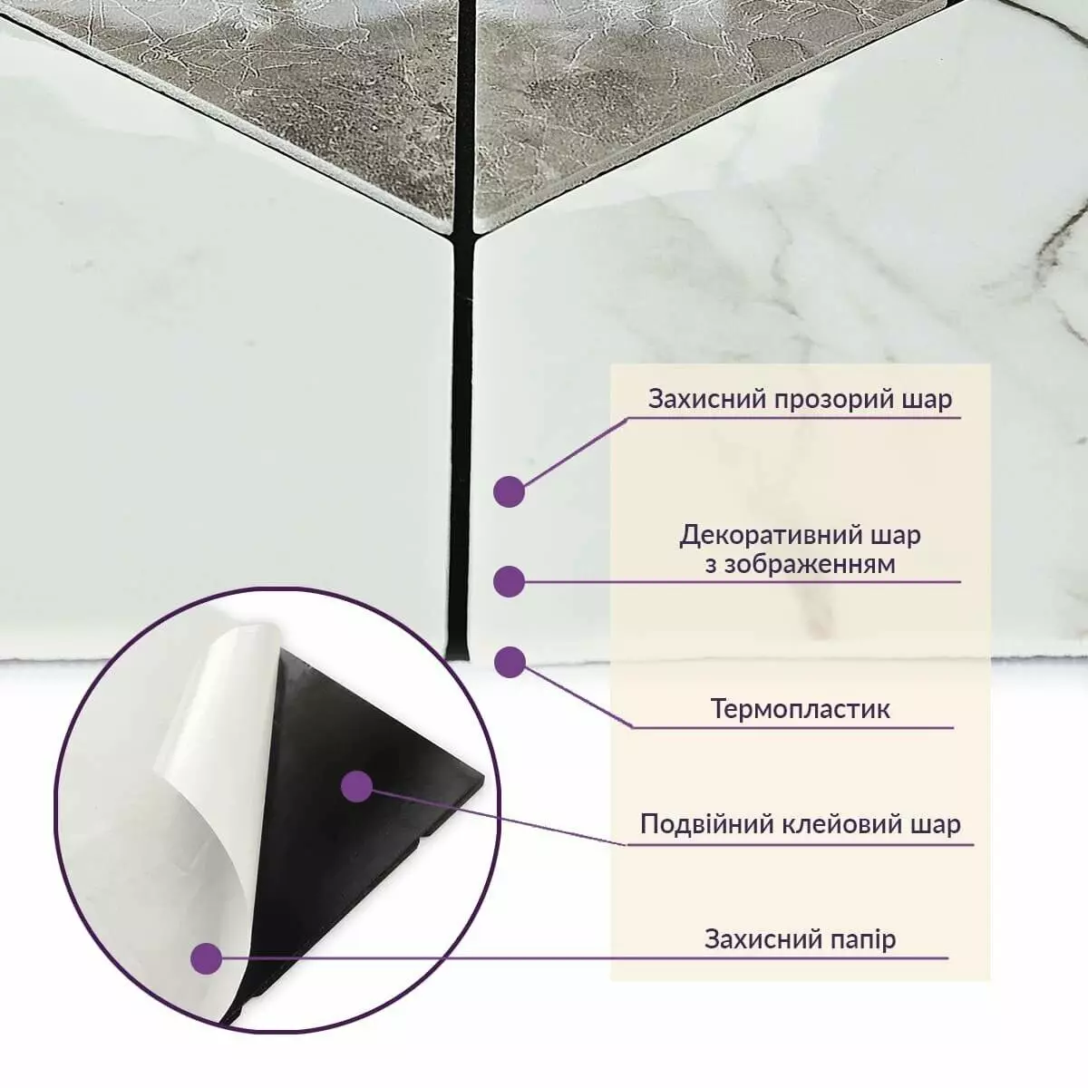 Зняти захисну плівку зі зворотного боку плитки, щоб відкрити клейку