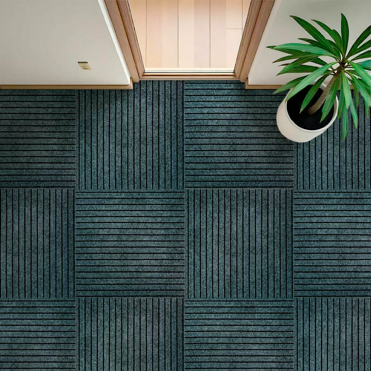 • Декоративні можливості: ковролінова плитка пропонує широкий вибір дизайнів, кольорів та текстур, що дозволяє створити унікальний інтер'єр та підкреслити стиль приміщення.