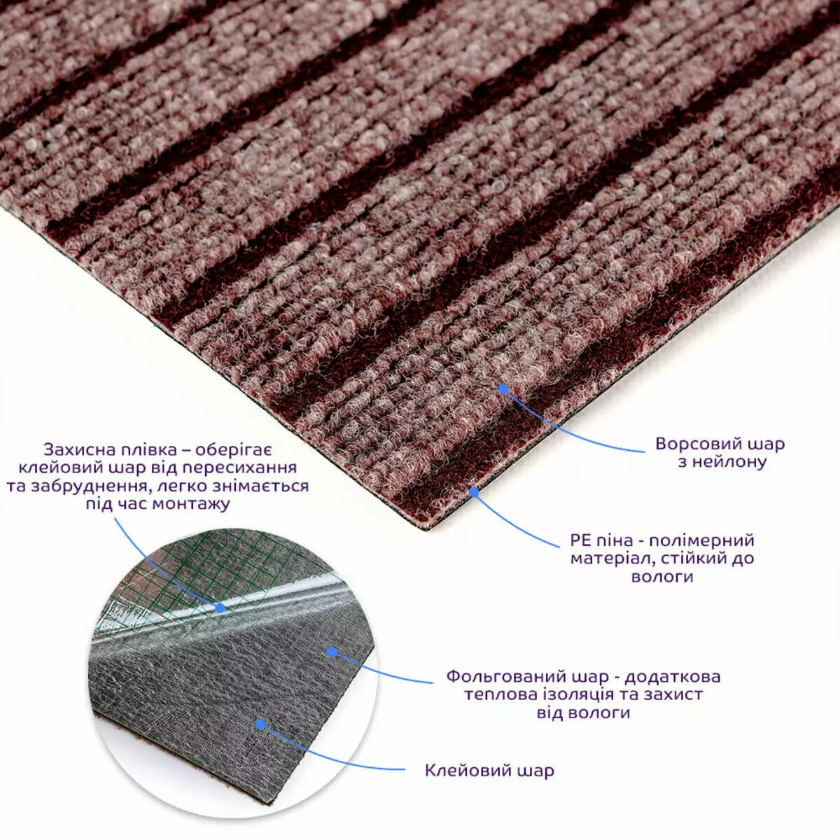• Догляд: ковролінова плитка легко чиститься і миється, що робить її догляд простим та зручним.