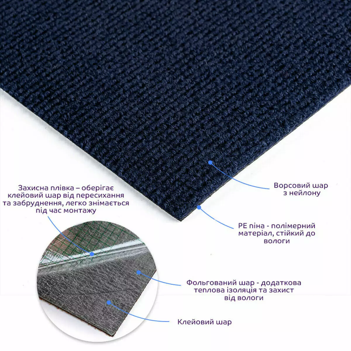 • Догляд: ковролінова плитка легко чиститься і миється, що робить її догляд простим та зручним.