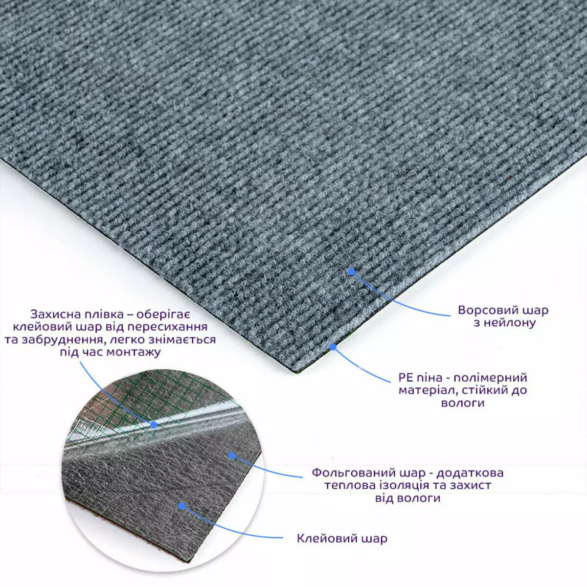 - Поступово знімати захисну плівку на звороті ковролінової