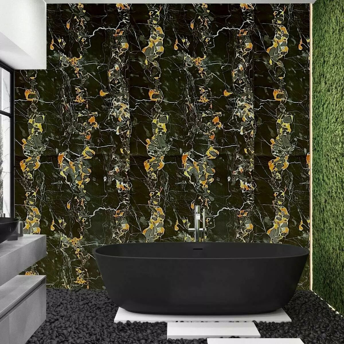 Самоклеюча плівка 0,45х10м х 0,07мм Чорний мармур з жовтим SW-00001282