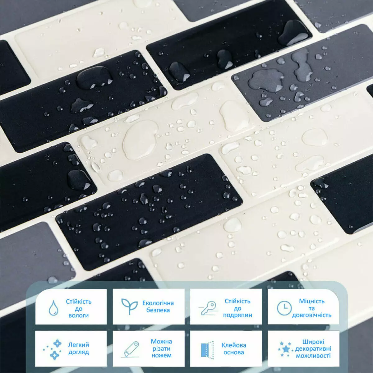 Самоклеюча поліуретанова плитка чорна сіра молочна цегла 305х305х1мм (D) SW-00001329