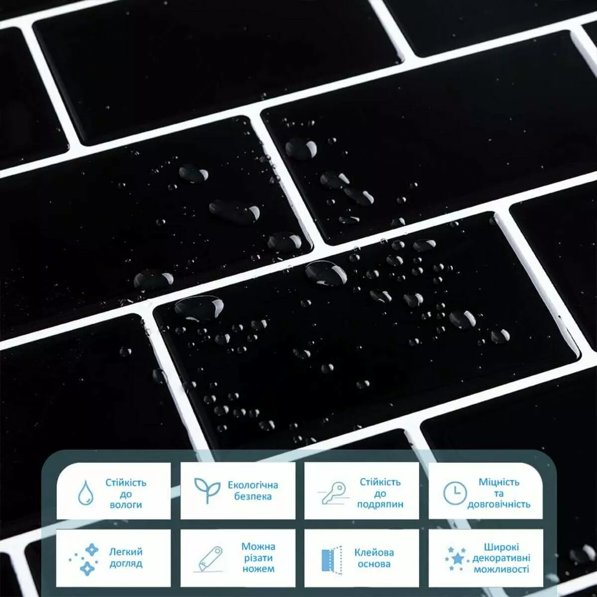 • Декоративний шар: кольоровий друк високої роздільної здатності, що імітує фактуру керамічної плитки та частково природних матеріалів, завдяки чіткому та детальному зображенню, а УФ-захист допомагає запобігти вигорянню, зберігаючи колір насиченим.