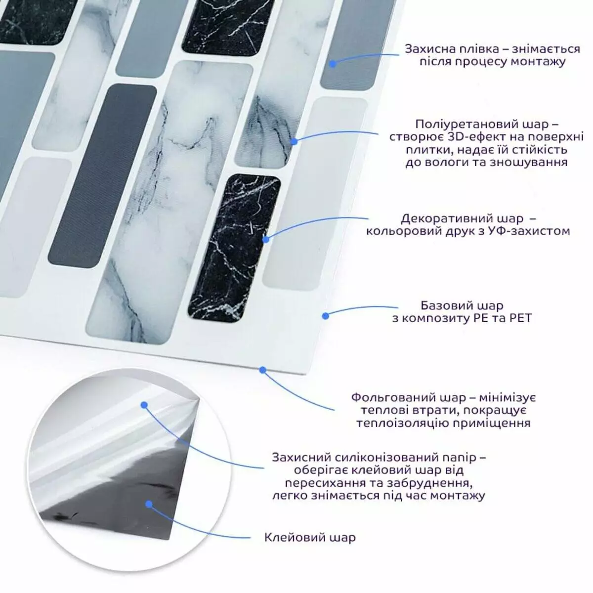 Поліуретановий шар: створює 3D-ефект на поверхні плитки.