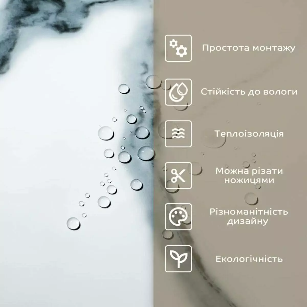 - 2. Стійкість до вологи: матеріал стійкий до впливу вологи та пари, а також до появи плісняви, що робить його придатним для використання у приміщеннях з високою вологістю, таких як ванни та кухні. Плитка підходить для створення фартуха кухні, можна клеїти біля плити на відстані не менше ніж 20-25 см;