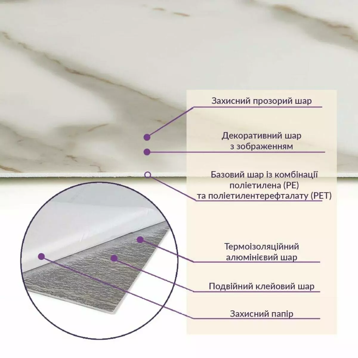 - 3. Ізоляція: плитка має звукову та теплоізоляцію завдяки наявності повітряних прошарків та додатковому алюмінієвому шару;