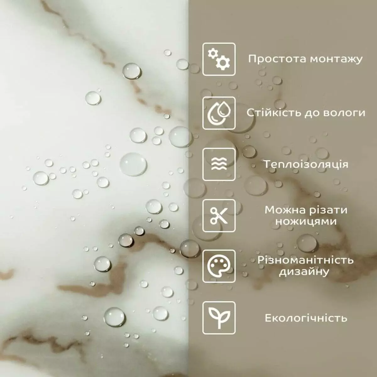 - 2. Стійкість до вологи: матеріал стійкий до впливу вологи та пари, а також до появи плісняви, що робить його придатним для використання у приміщеннях з високою вологістю, таких як ванни та кухні. Плитка підходить для створення фартуха кухні, можна клеїти біля плити на відстані не менше ніж 20-25 см;