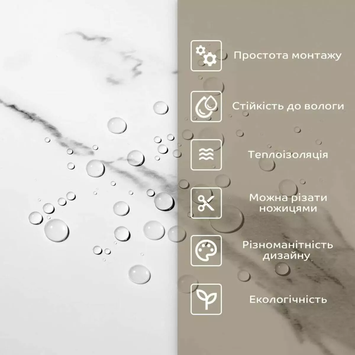 - 2. Стійкість до вологи: матеріал стійкий до впливу вологи та пари, а також до появи плісняви, що робить його придатним для використання у приміщеннях з високою вологістю, таких як ванни та кухні. Плитка підходить для створення фартуха кухні, можна клеїти біля плити на відстані не менше ніж 20-25 см;