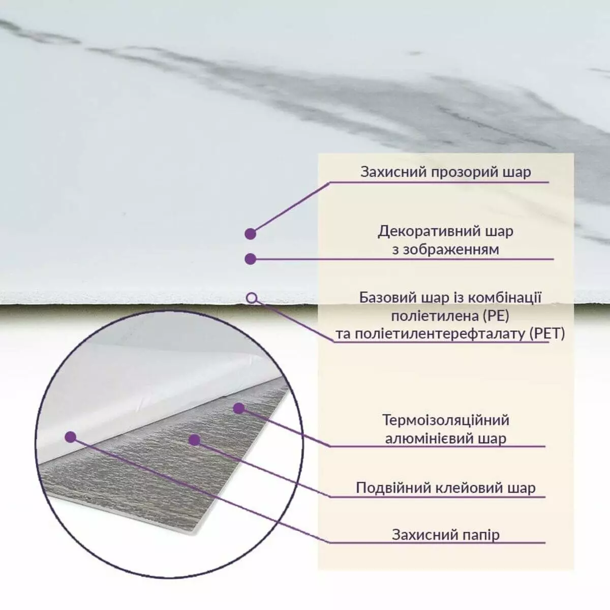 - 3. Ізоляція: плитка має звукову та теплоізоляцію завдяки наявності повітряних прошарків та додатковому алюмінієвому шару;