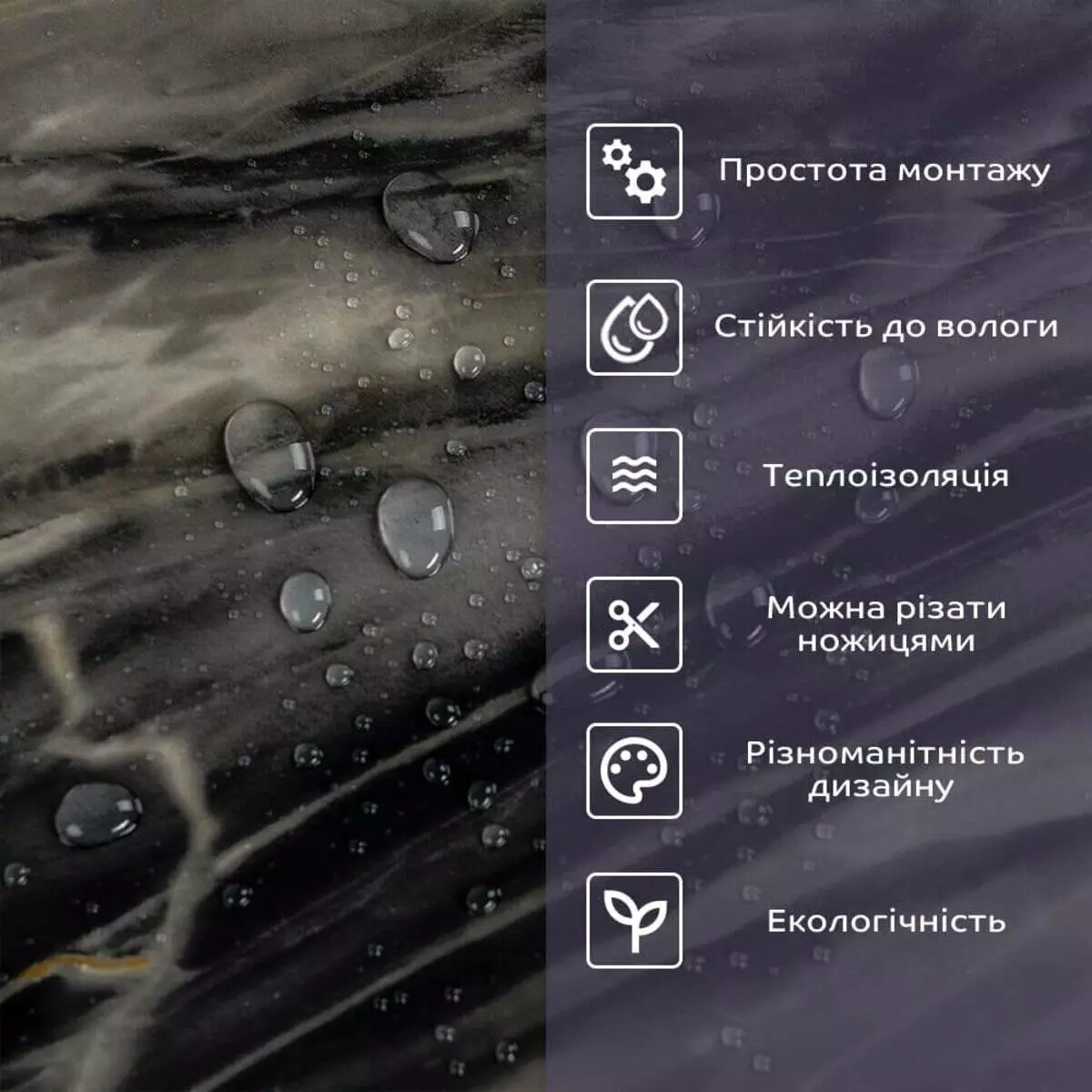 - 2. Стійкість до вологи: матеріал стійкий до впливу вологи та пари, а також до появи плісняви, що робить його придатним для використання у приміщеннях з високою вологістю, таких як ванни та кухні. Плитка підходить для створення фартуха кухні, можна клеїти біля плити на відстані не менше ніж 20-25 см;