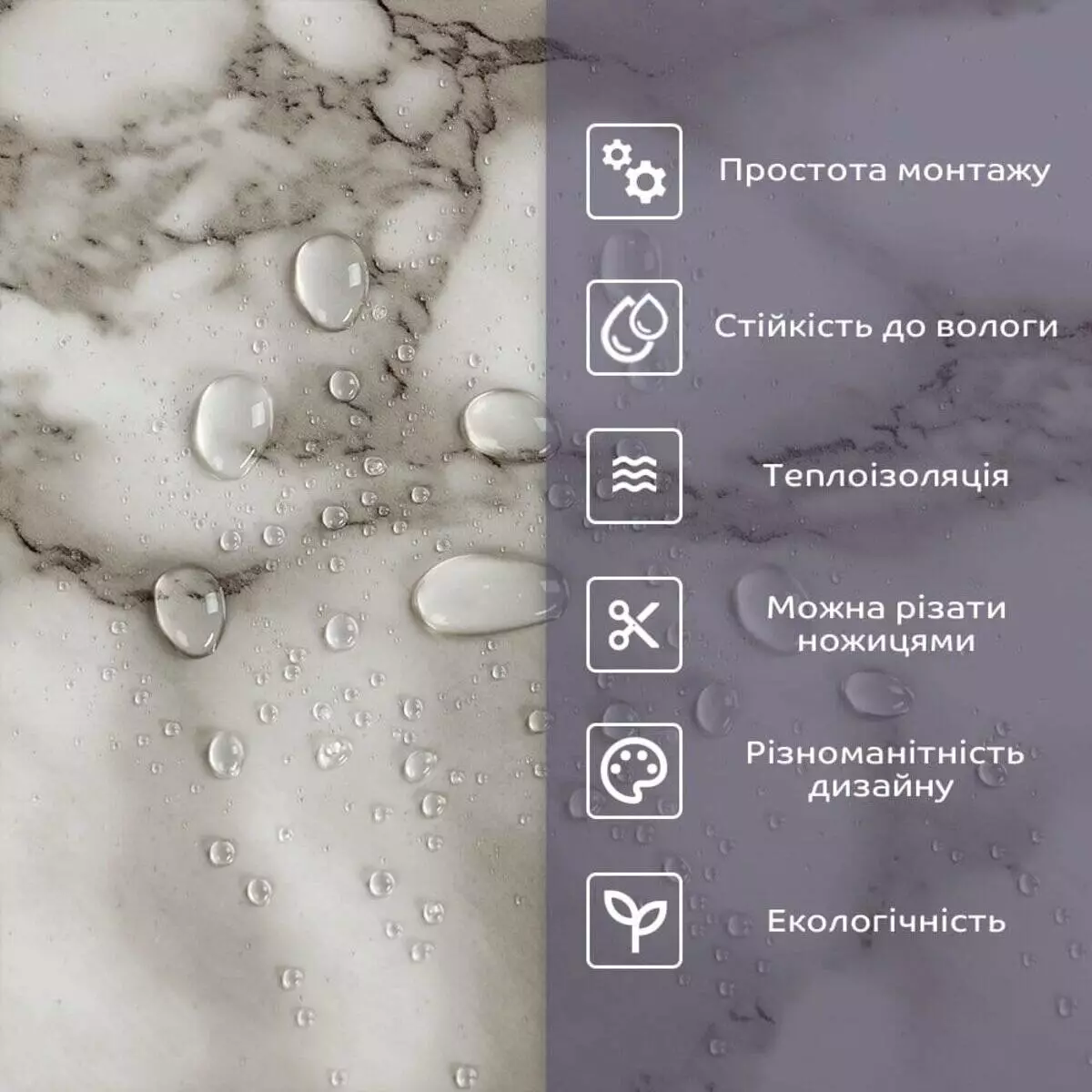 - 2. Стійкість до вологи: матеріал стійкий до впливу вологи та пари, а також до появи плісняви, що робить його придатним для використання у приміщеннях з високою вологістю, таких як ванни та кухні. Плитка підходить для створення фартуха кухні, можна клеїти біля плити на відстані не менше ніж 20-25 см;