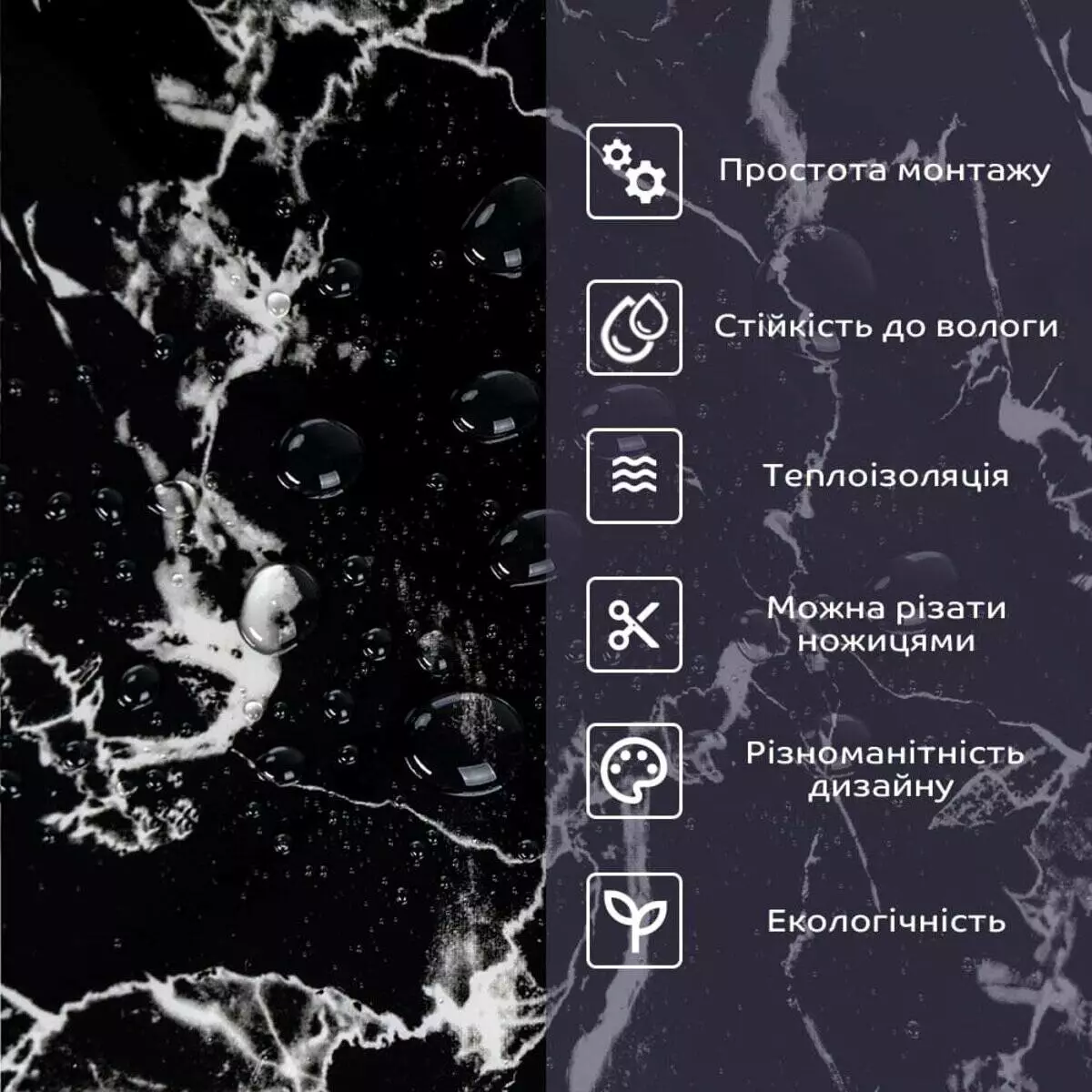 - 1. Легкість та міцність: плитка легка та міцна, що спрощує її логістику, установку та забезпечує довгий термін служби. Матеріал легкий в установці, можна різати ножицями чи монтажним ножем, не потребує додаткових матеріалів чи спеціалістів. Між смугами не розходиться, не роздмухується і не деформується. Відсоток обрізу становить 1%, що є найкращим показником для настінних покриттів;