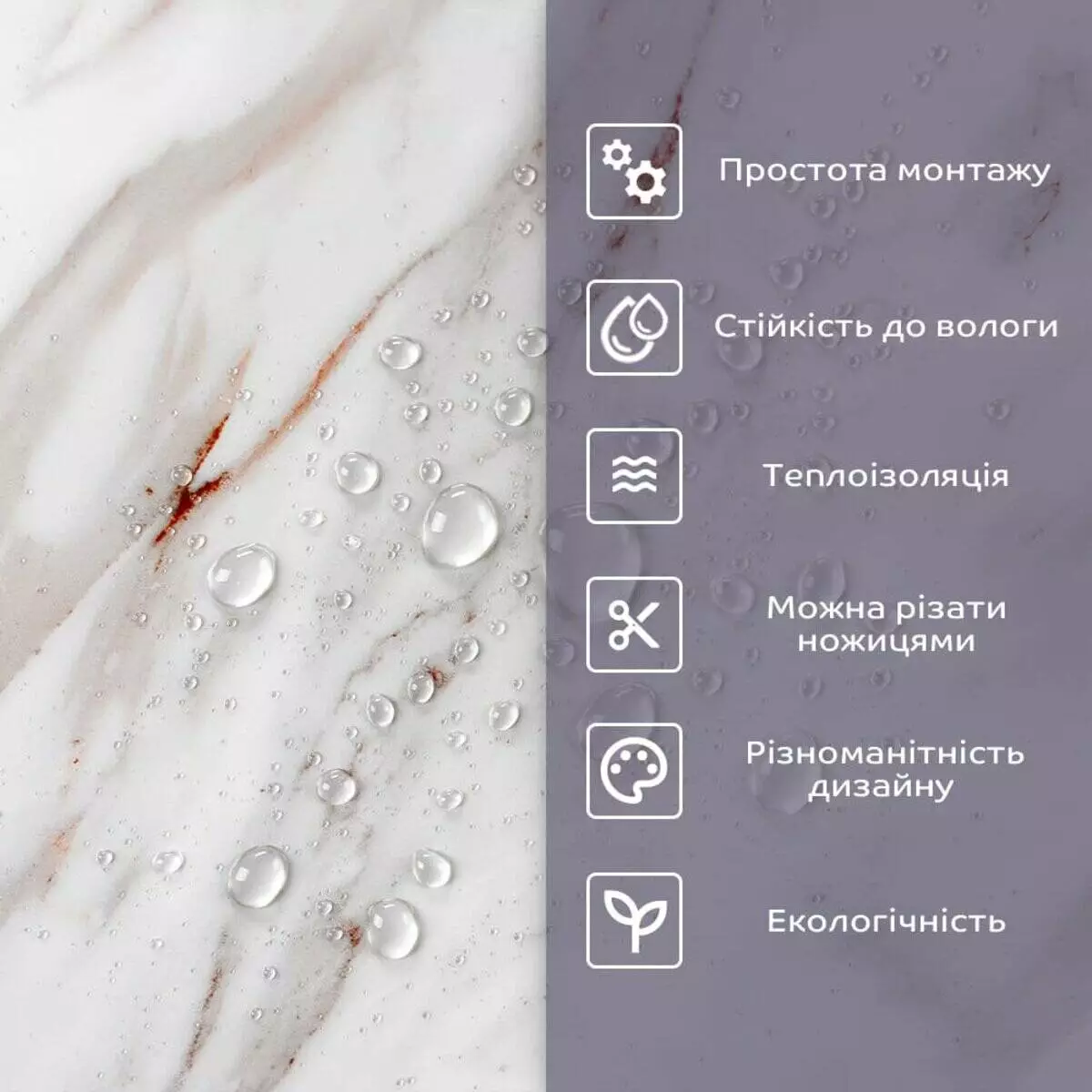 - 2. Стійкість до вологи: матеріал стійкий до впливу вологи та пари, а також до появи плісняви, що робить його придатним для використання у приміщеннях з високою вологістю, таких як ванни та кухні. Плитка підходить для створення фартуха кухні, можна клеїти біля плити на відстані не менше ніж 20-25 см;