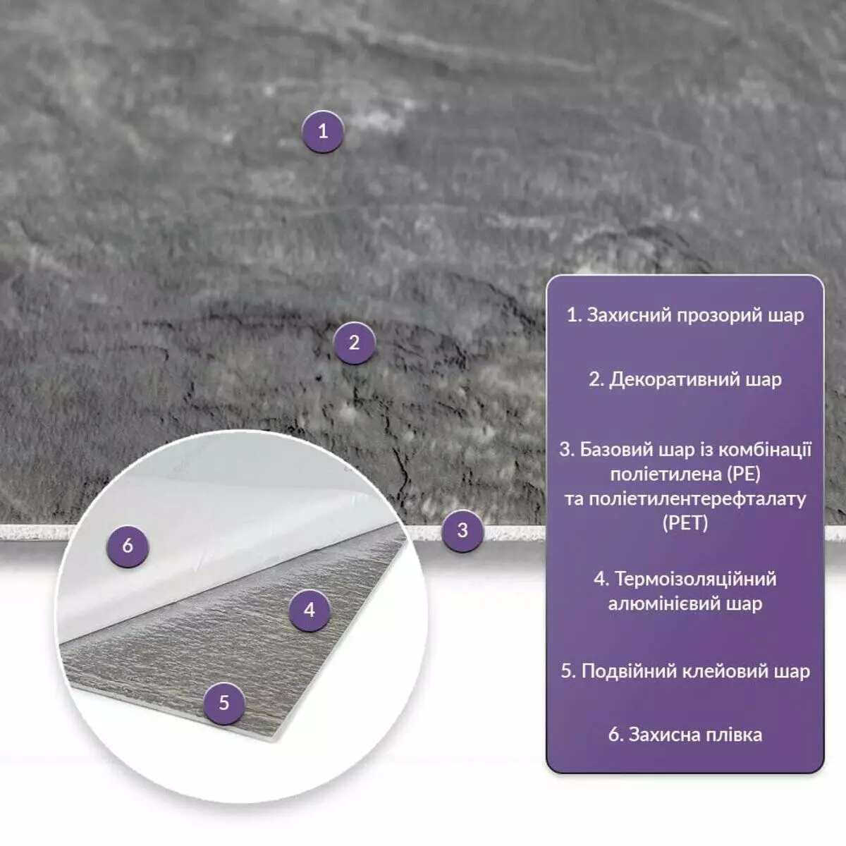 - 3. Ізоляція: плитка має звукову та теплоізоляцію завдяки наявності повітряних прошарків та додатковому алюмінієвому шару;