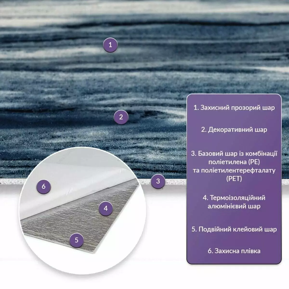 - 3. Ізоляція: плитка має звукову та теплоізоляцію завдяки наявності повітряних прошарків та додатковому алюмінієвому шару;