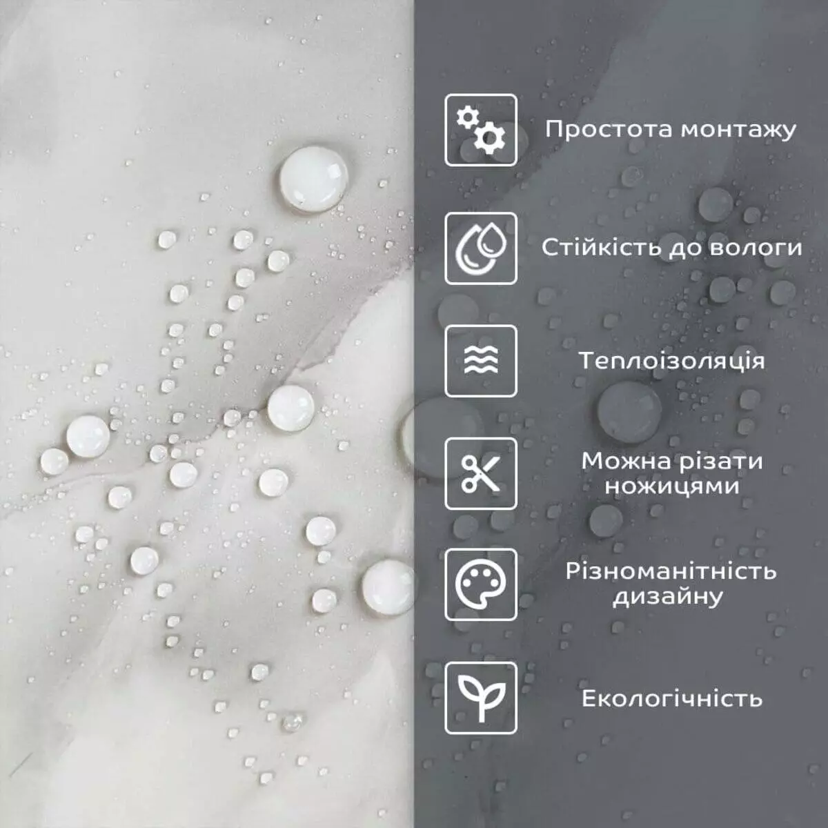 - 2. Стійкість до вологи: матеріал стійкий до впливу вологи та пари, а також до появи плісняви, що робить його придатним для використання у приміщеннях з високою вологістю, таких як ванни та кухні. Плитка підходить для створення фартуха кухні, можна клеїти біля плити на відстані не менше ніж 20-25 см;