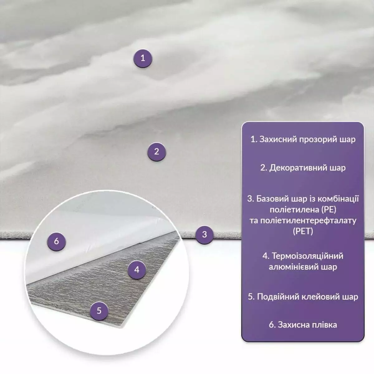 - 3. Ізоляція: плитка має звукову та теплоізоляцію завдяки наявності повітряних прошарків та додатковому алюмінієвому шару;