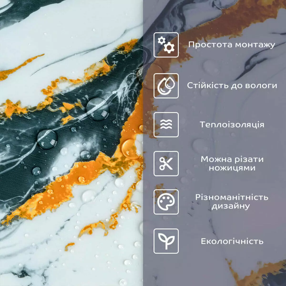 - 2. Стійкість до вологи: матеріал стійкий до впливу вологи та пари, а також до появи плісняви, що робить його придатним для використання у приміщеннях з високою вологістю, таких як ванни та кухні. Плитка підходить для створення фартуха кухні, можна клеїти біля плити на відстані не менше ніж 20-25 см;