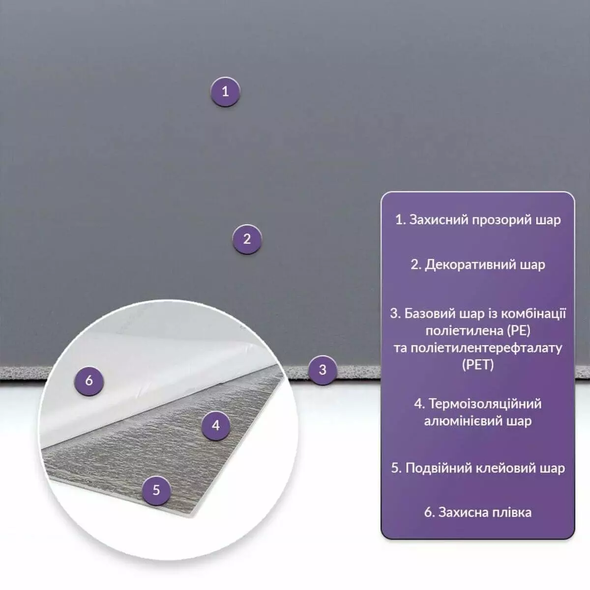 - 3. Ізоляція: плитка має звукову та теплоізоляцію завдяки наявності повітряних прошарків та додатковому алюмінієвому шару;