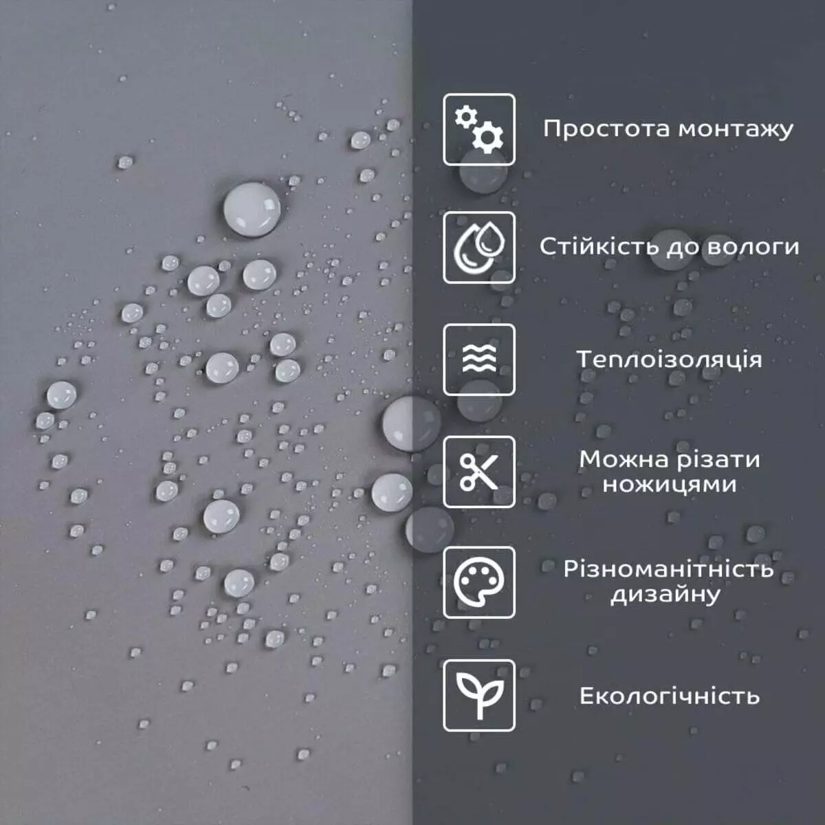 - 2. Стійкість до вологи: матеріал стійкий до впливу вологи та пари, а також до появи плісняви, що робить його придатним для використання у приміщеннях з високою вологістю, таких як ванни та кухні. Плитка підходить для створення фартуха кухні, можна клеїти біля плити на відстані не менше ніж 20-25 см;