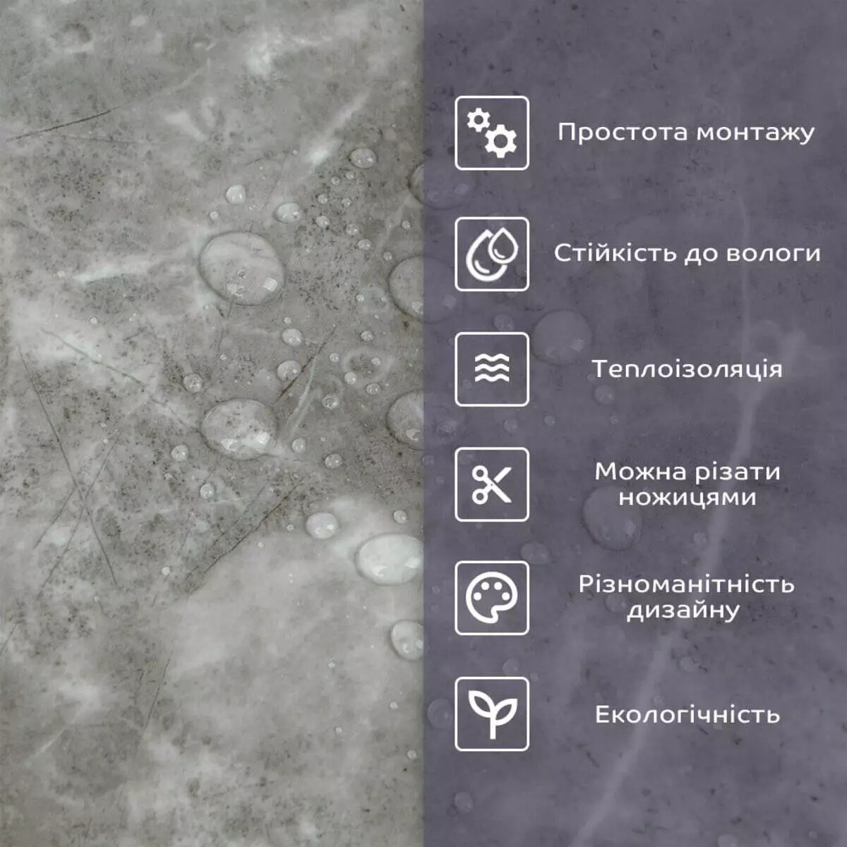 - 1. Легкість та міцність: плитка легка та міцна, що спрощує її логістику, установку та забезпечує довгий термін служби. Матеріал легкий в установці, можна різати ножицями чи монтажним ножем, не потребує додаткових матеріалів чи спеціалістів. Між смугами не розходиться, не роздмухується і не деформується. Відсоток обрізу становить 1%, що є найкращим показником для настінних покриттів;