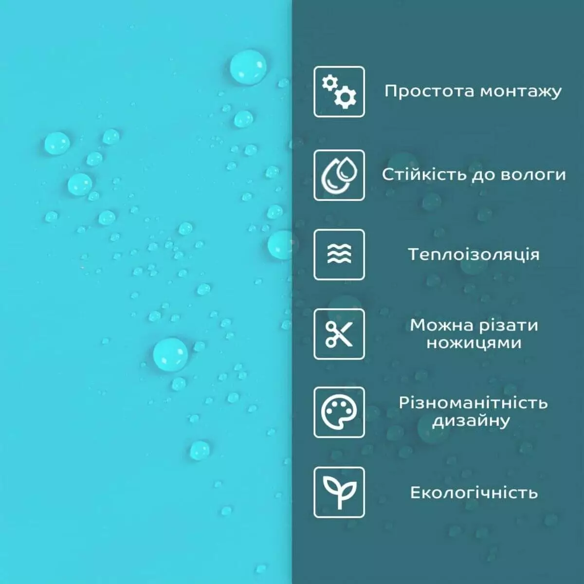 - 1. Легкість та міцність: плитка легка та міцна, що спрощує її логістику, установку та забезпечує довгий термін служби. Матеріал легкий в установці, можна різати ножицями чи монтажним ножем, не потребує додаткових матеріалів чи спеціалістів. Між смугами не розходиться, не роздмухується і не деформується. Відсоток обрізу становить 1%, що є найкращим показником для настінних покриттів;