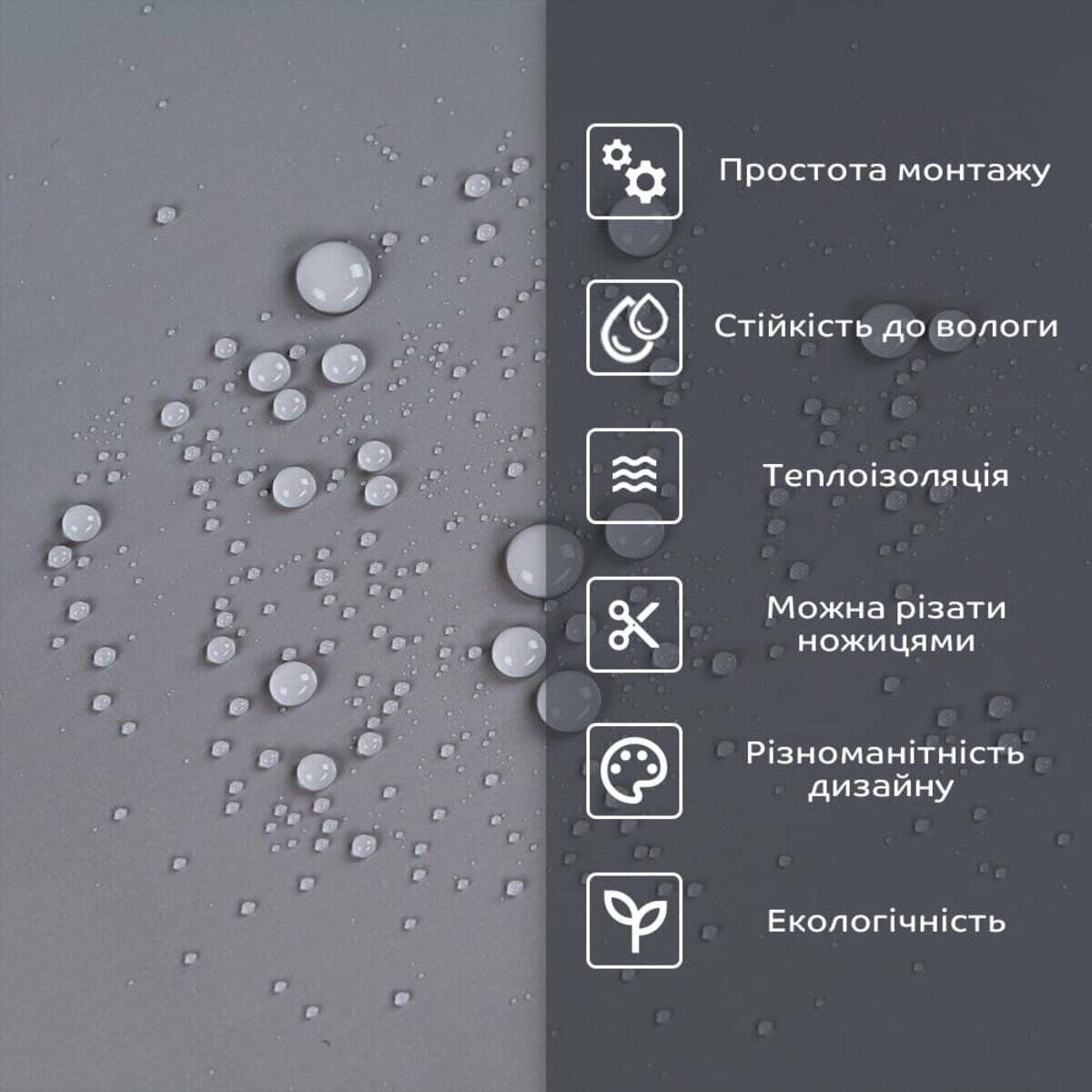 - 1. Легкість та міцність: плитка легка та міцна, що спрощує її логістику, установку та забезпечує довгий термін служби. Матеріал легкий в установці, можна різати ножицями чи монтажним ножем, не потребує додаткових матеріалів чи спеціалістів. Між смугами не розходиться, не роздмухується і не деформується. Відсоток обрізу становить 1%, що є найкращим показником для настінних покриттів;