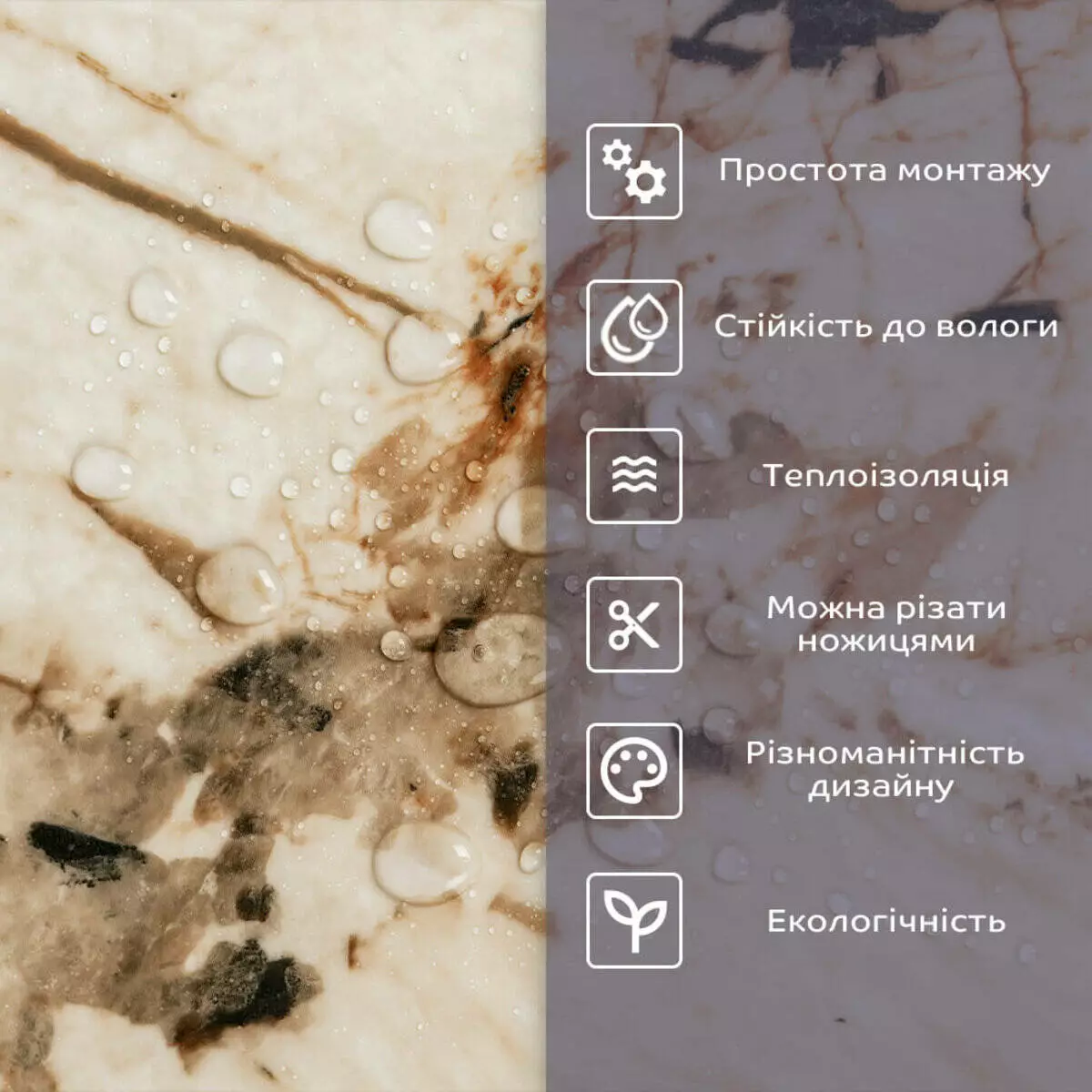 - 2. Стійкість до вологи: матеріал стійкий до впливу вологи та пари, а також до появи плісняви, що робить його придатним для використання у приміщеннях з високою вологістю, таких як ванни та кухні. Плитка підходить для створення фартуха кухні, можна клеїти біля плити на відстані не менше ніж 20-25 см;