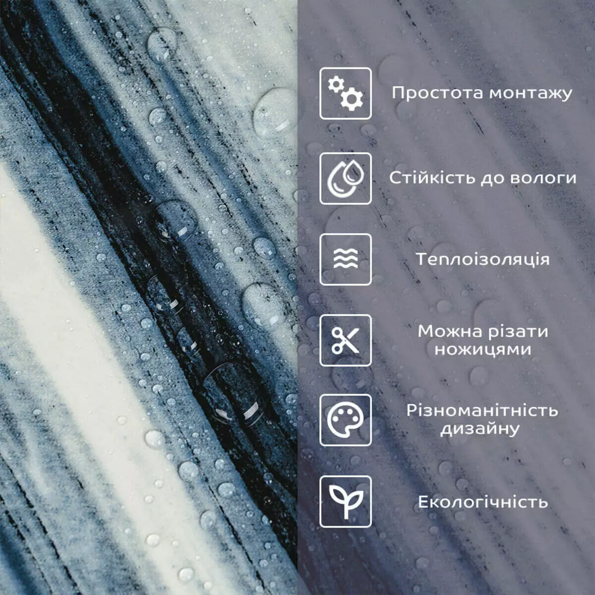- 2. Стійкість до вологи: матеріал стійкий до впливу вологи та пари, а також до появи плісняви, що робить його придатним для використання у приміщеннях з високою вологістю, таких як ванни та кухні. Плитка підходить для створення фартуха кухні, можна клеїти біля плити на відстані не менше ніж 20-25 см;