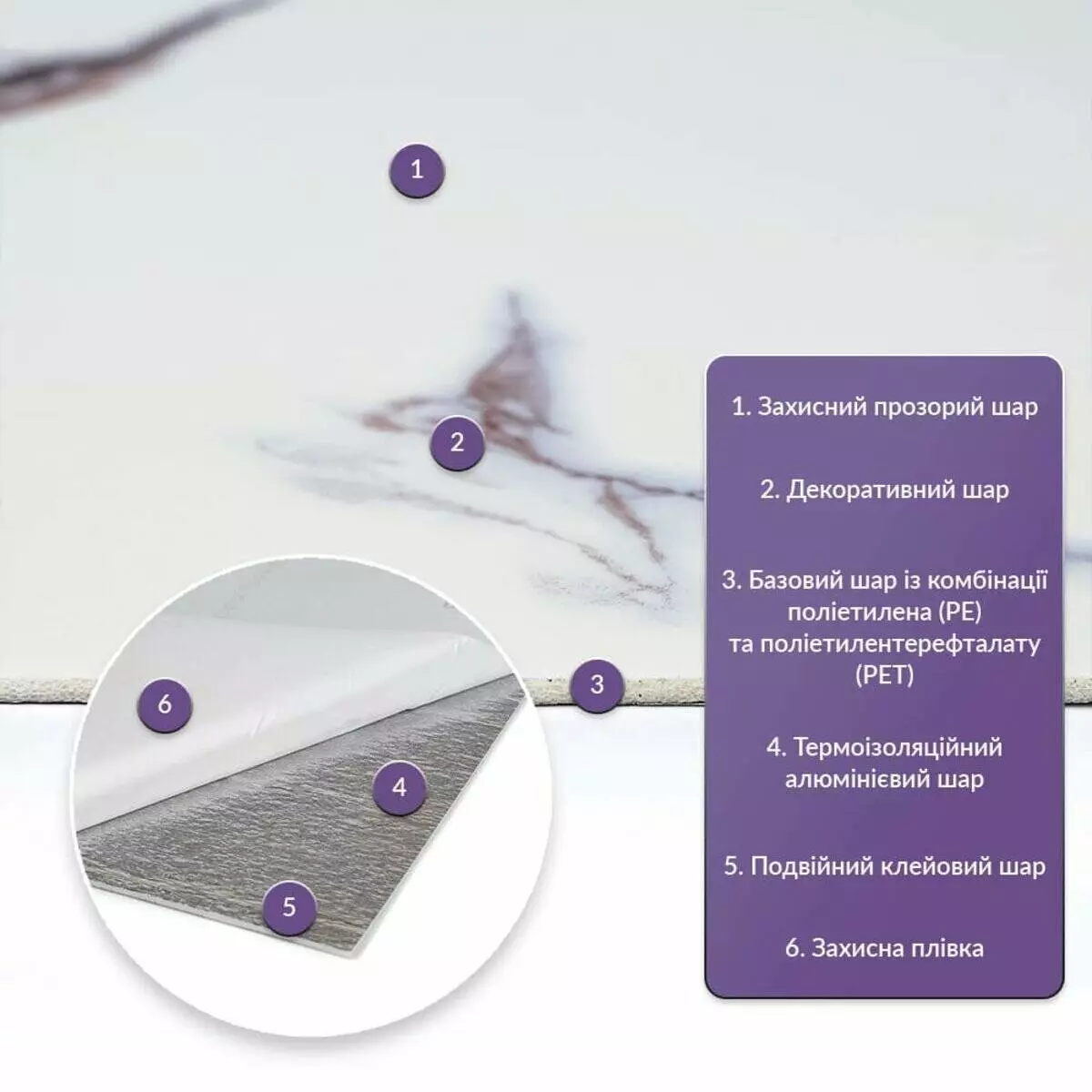 - 3. Ізоляція: плитка має звукову та теплоізоляцію завдяки наявності повітряних прошарків та додатковому алюмінієвому шару;