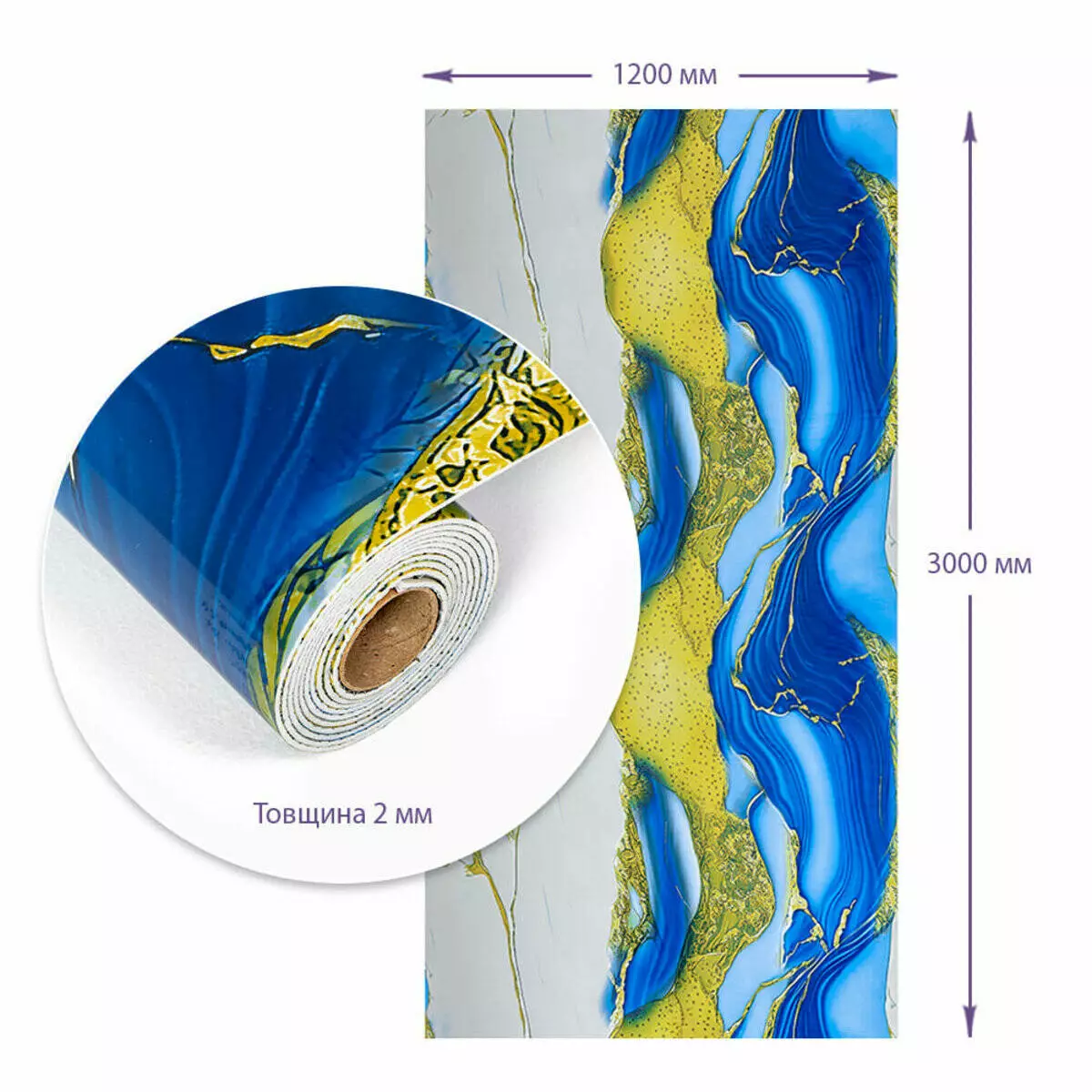 - 120 см х 300 см х 2 мм – 3,6 м2